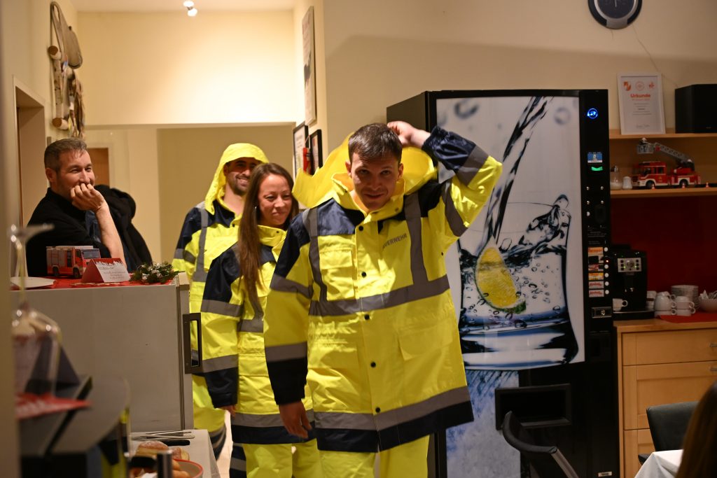 Zusätzlich wurde eine neue „Uniform“ vorgestellt: ein Regenschutz, der künftig dafür sorgen soll, dass unsere Einsatzuniformen bei Unwettereinsätzen nicht vollständig durchnässt werden.
